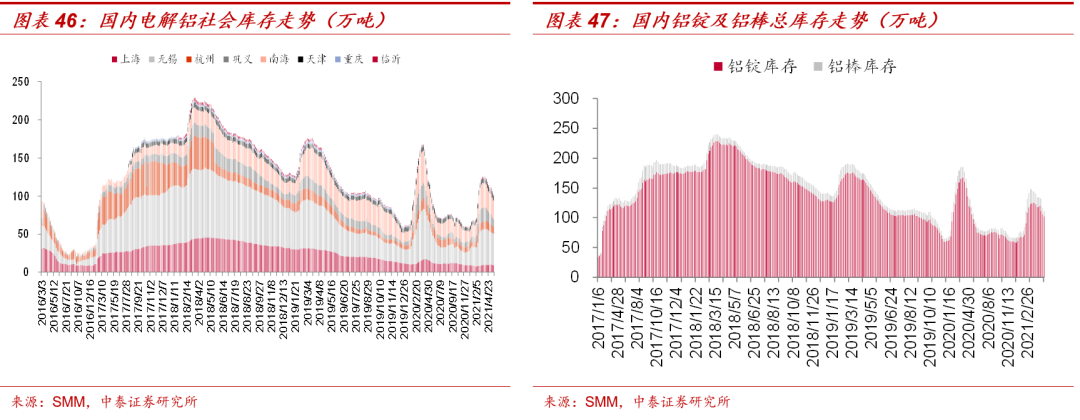 2、 对于电解铝, 国内方面,下游加工企业开工快速回升,龙头企业开工率恢复至接近节前水平,下游需求无虞,云南限电进一步收紧新增供给预期,本周八地铝锭库存合计102万吨,周度去库4.1万吨,电解铝去库有望延续。