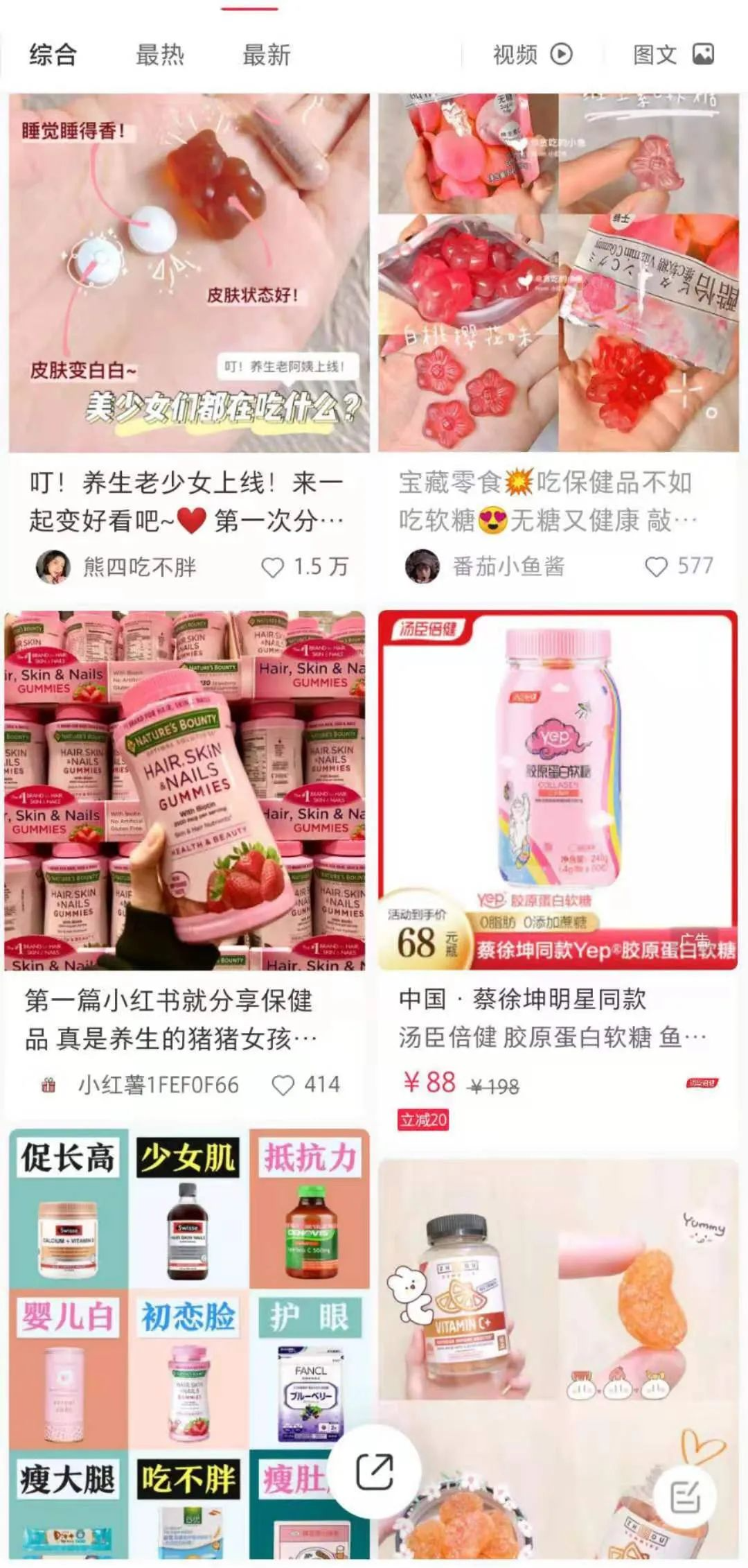 “只要长期吃,肯定有用啊。” 张媛是一位功能性食品的坚定拥护者,她坚持认为,功能性食品效果不能只看短期效果,要放长远看。“我觉得我吃了这些东西,身体素质要比前好多了。” 不像其他服用功能性食品的年轻人一样,在服用这些食品之前,张媛在身体上并没有过多不适,最多就是经常觉得很疲惫。“生活压力这么大,需要缓解疲劳。而且女孩子嘛,随着年龄越来越大,身体各个功能都需要保养啊。” 在小红书的安利下,张媛接触了功能性食品,她最开始购买的只是一些胶原蛋白营养品,“听说这个吃了对皮肤好。” 慢慢地,张媛被安利的功能性食品越来越多,现在每天服用的保健品有近十种,除了必备要吃的功能性食品外,还准备了褪黑素、牛磺酸片、护肝片、护眼片等只用于特定场合的功能性食品。