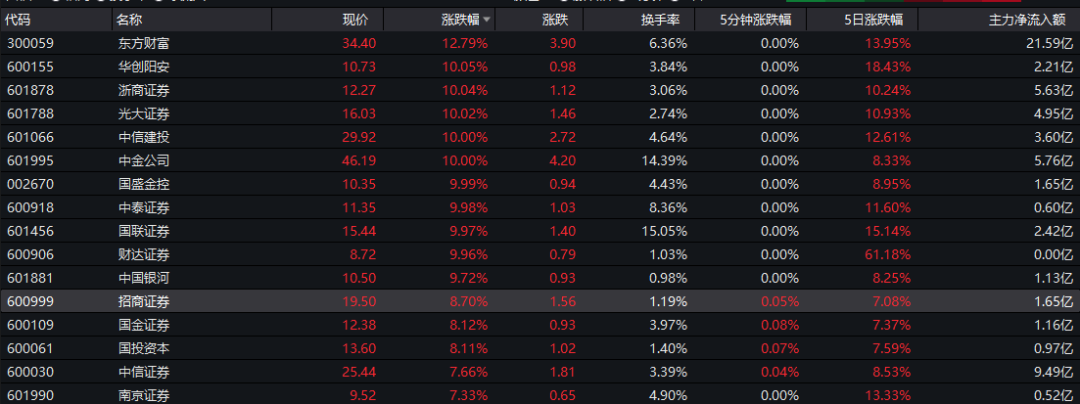今天大盘给力啊,大金融板块终于发力了,尤其是券商,出现了涨停潮。