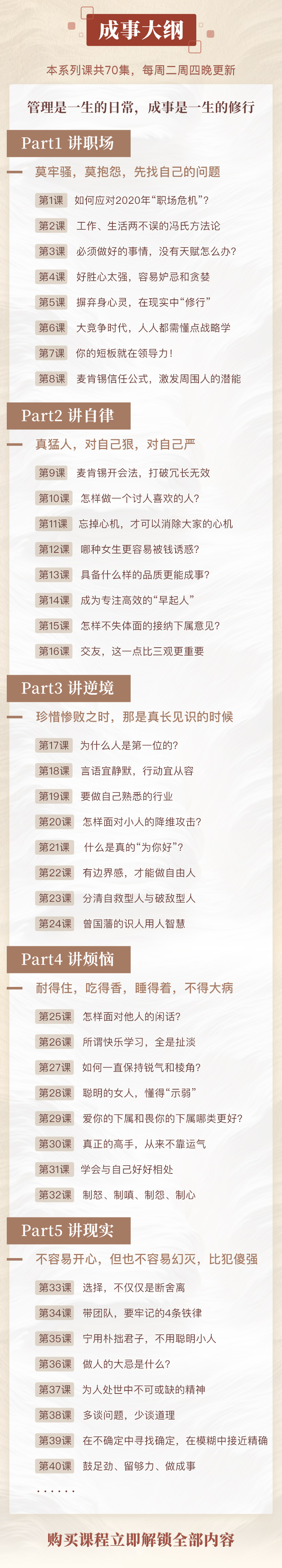 职场—管理—自律—逆境—烦恼—现实—成事,覆盖多重生活场景,实现人生升级!
