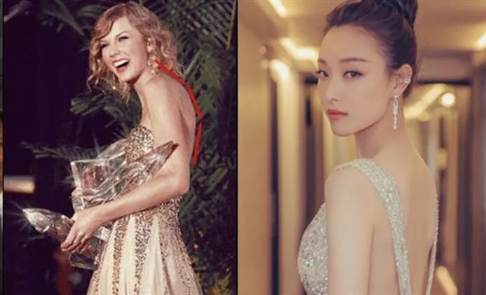 左边是刚刚30岁的霉霉(泰勒·斯威夫特),驼背、圆肩、脖子前伸;