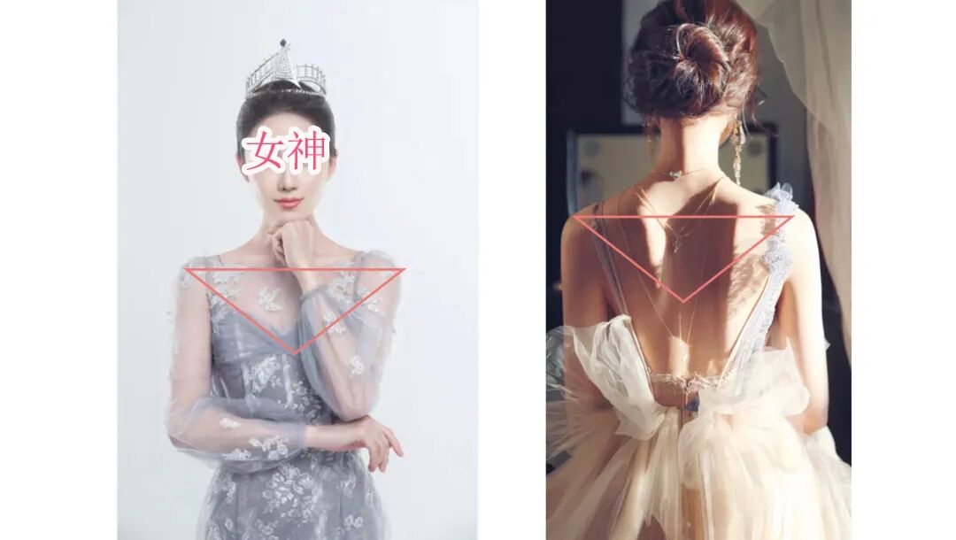 因我们的 视觉会首先不自觉落到人的上半身 ,即颈背肩美人三角区域,这个部位形成了人们的第一印象。