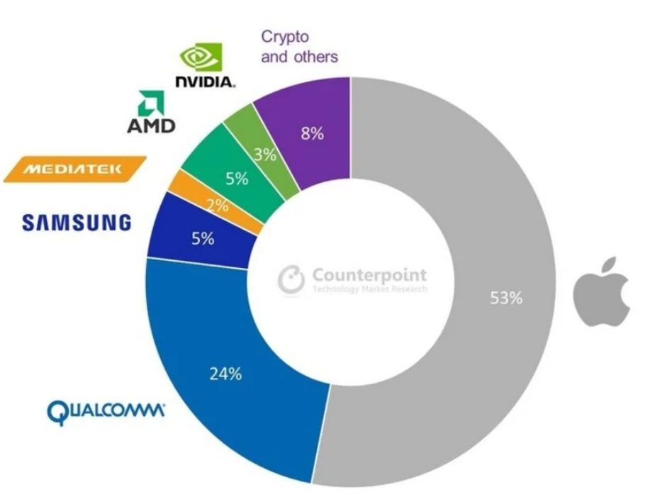 据Counterpoint统计报告显示,苹果是台积电5nm芯片的最大客户,占了53%的产量。
