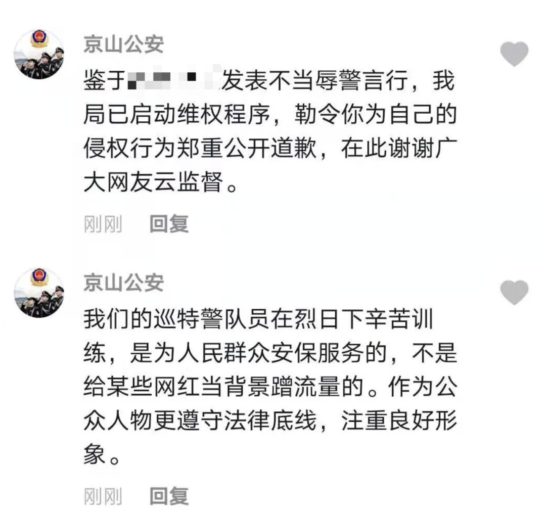 @京山公安 在该女子的视频下喊话: 巡特警队员在烈日下辛苦训练 是为人民群众安保服务的 不是给某些网红当背景蹭流量的