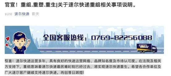 近日,速尔快递发布声明称,将宣布进入破产重组程序。