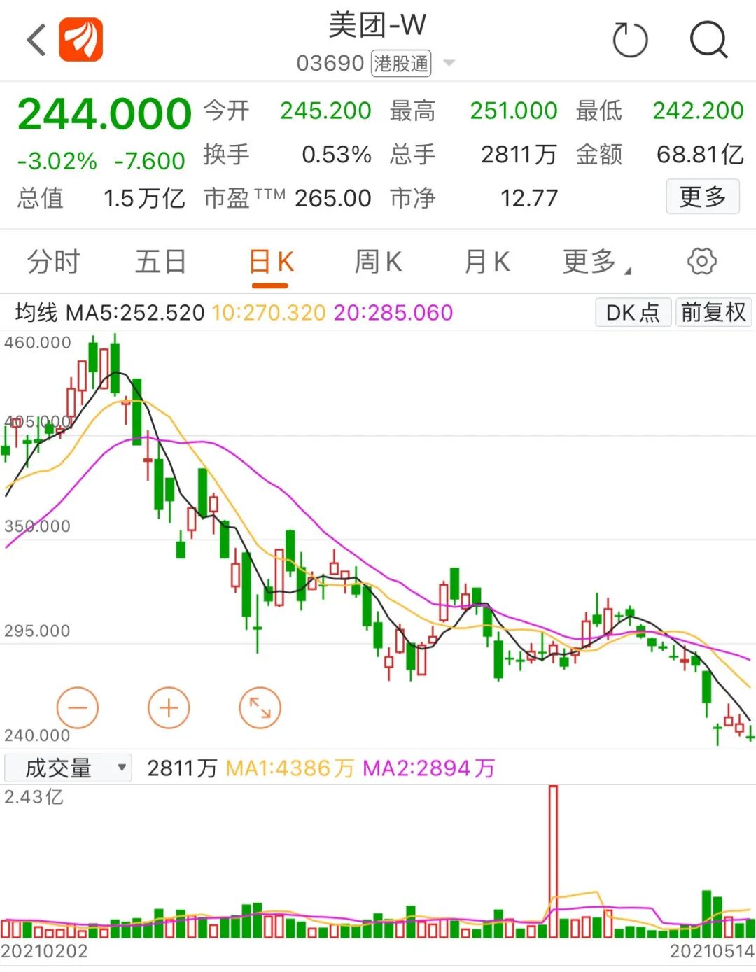 5月14日,美团收盘跌3.02%,新东方在线收盘跌5.25%、京东健康跌3.87%、泡泡玛特跌2.56%、阿里健康跌1.84%、阅文集团跌1.44%。这仅是5月14日的股价表现,对许多港股公司而言,自今年年内的高位,许多港股新经济龙头已经出现腰斩。