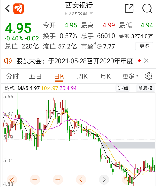5月6日晚间,西安银行公告称,自今年4月6日起至5月6日,该公司A股股票已经连续20个交易日收盘价低于最近一期末经审计的每股净资产,达到触发稳定股价措施启动条件。