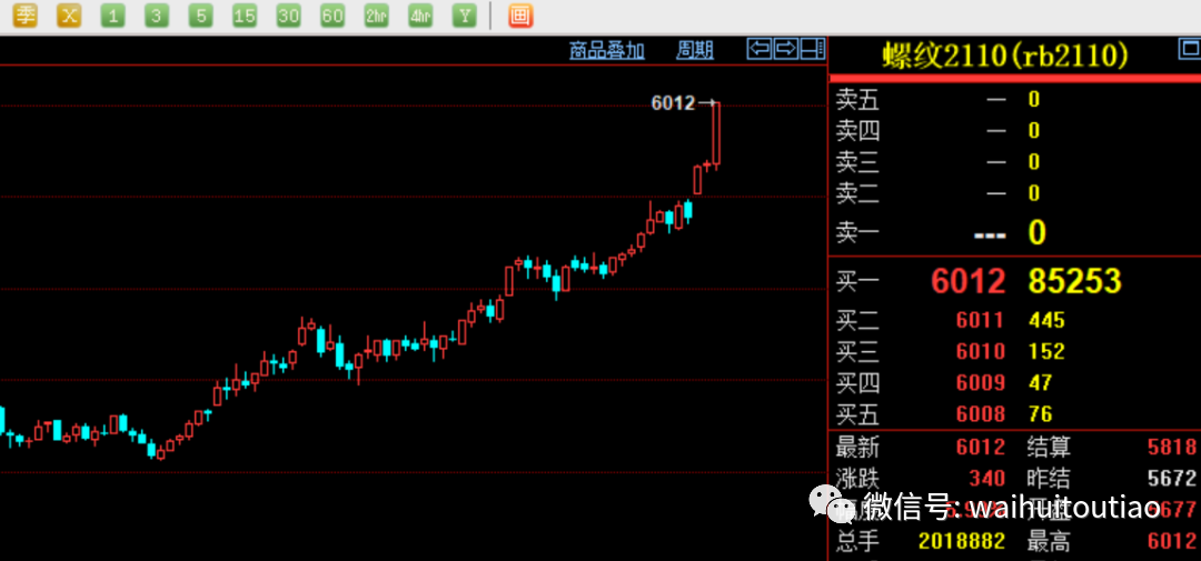 5月10日,市场一开盘就疯涨,铁矿石吨价涨破1300元、螺纹钢单吨超6000元、玻璃涨破2600元、沪铝涨过20000元/吨大关。此外,沪铜突破77000元大关,一度刷新2006年5月以来新高,突破近16年记录;沪铝期货升破20000元/吨,续刷逾13年来新高;玻璃期货盘中一度触及涨停,报2682元/吨,续创历史新高。