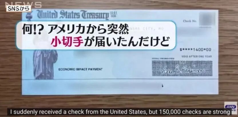 5月24日,因为特朗普颁布的刺激计划,近14亿美元的经济刺激支票寄给了死去的美国人,上世纪70年代曾在美国工作的一位日本75岁退休老人还收到一张1400美元的刺激计划支票。(来源:环球网)