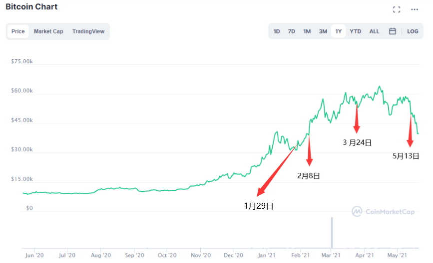 5月13日,马斯克振臂一呼,质疑比特币对环境不友好,宣布停止使用比特币支付特斯拉。