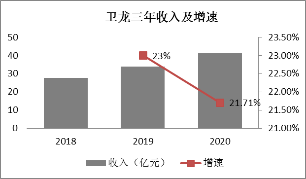 招股书显示,2018年、2019年及2020年,卫龙总收入分别是27.52亿元、33.85亿元、41.20亿元,2019年和2020年的营收增速分别为23%、21.71%。