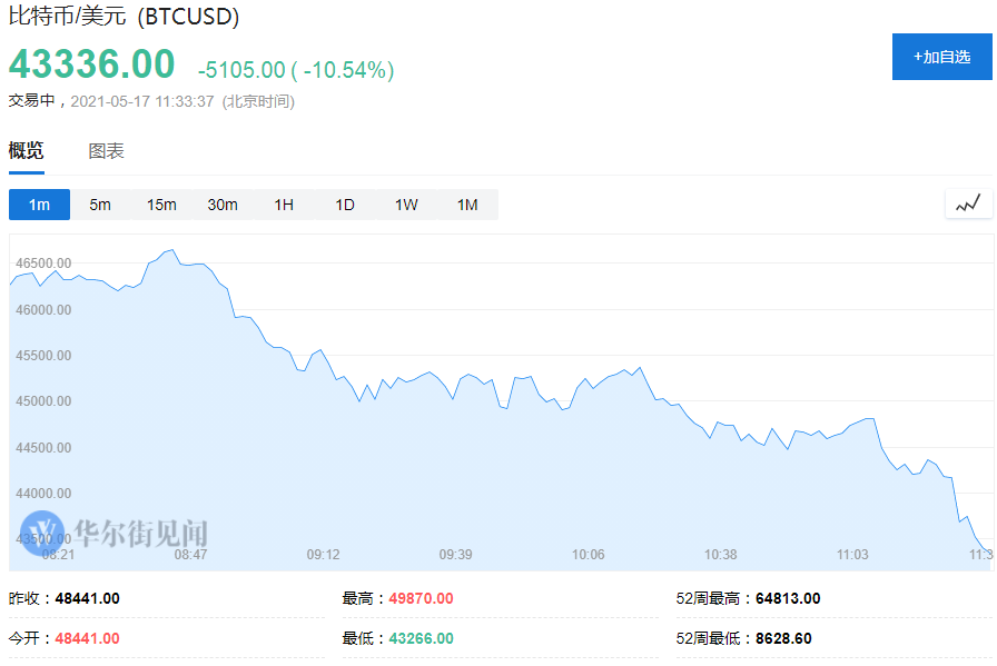 对于比特币来说,成也马斯克,败也马斯克。几日以来持续萎靡的 比特币, 因为马斯克的一条评论,再遭重击,大跌超10%, 一度跌破44000美元关口 。