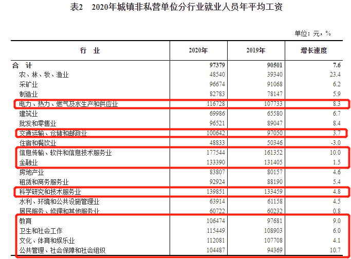 总体来看,在城镇非私营单位中,有9个行业的年平均工资水平突破10万元大关,比2019年增加了3个。