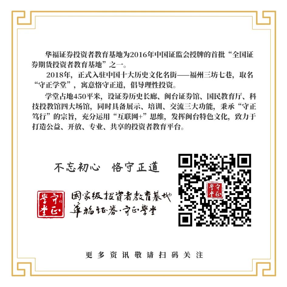 免责声明 本栏目仅为投资者教育目的而发布,本公司对这些信息的准确性和完整性不作任何保证,不构成任何投资建议,投资者不应该以该等信息取代其独立判断或仅根据该等信息做出决策。华福证券投资者教育基地力求本栏目信息准确可靠,但对这些信息的准确性或完整性不作保证,亦不对因使用该等信息而引发或可能引发的损失承担任何责任。