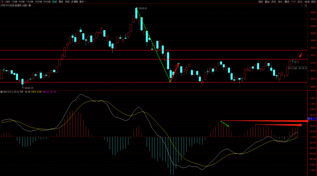 沪深300依旧维持在5200点之下维持震荡走势,这个情况如果持续越久越容易引发调整走势,短期关注下方5112附近的支撑如果跌破则可能出现扩张下跌走势。