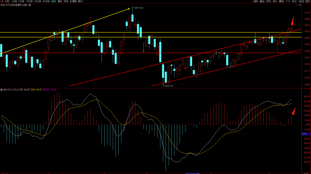 中证500短期算是站稳了6500点,后续在没有跌破这个位置之前,大概率不会有太大的跌幅,而后续需要关注的是在后续行情macd量柱的变化,在无法出现比前期量柱大的情况下就可能会有调整结构出现。