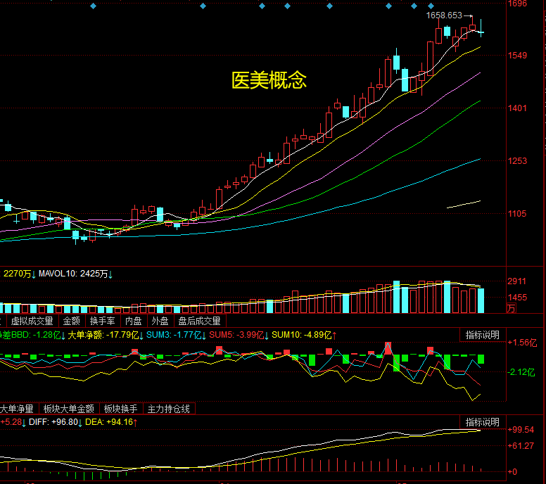 评价应对: 北向资金回来砸盘,指数回踩震荡,情绪共振分化回落 。高位抱团股+老主流的钱不好赚, 688068热景生物+300069旗天科技+601127小康股份+000615奥园美谷+600172黄河旋风+603518锦弘集团今日集体大跌,医美指数面临死叉、板块内赚钱效应并不好,唯有002612朗姿股份万绿丛中一点红, 为明后天的潜在修复预期留下活口。 昨晚复盘说过医美概念、锂电+新能源车这些持续性大主流、近期以打日内优质首板、或在高辨识度的核心票里高抛低吸套利为好、但总结这几天的板块赚钱效应,会 发现其实不太好赚。今天高位抱团票出现大跌或跌停,高低切换新老交接的操作应该更好 ,也即参与新的、日内强度足够爆的热点方向 :如近期赚钱效应还不错的证券、蠢蠢欲动的VR/AR+游戏等。