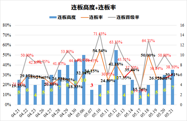 量化数据: 收盘连板 18 只(含ST股3只), 15 只非ST连板— 正常 ,其中 0 只创业板20%连板—正常,连板炸板(2-3板为主)2只—较少,涨停炸板率 15% —正常 ,涨停连板率 30.51% —较好 ,连板晋级率 38.10% —较好 。