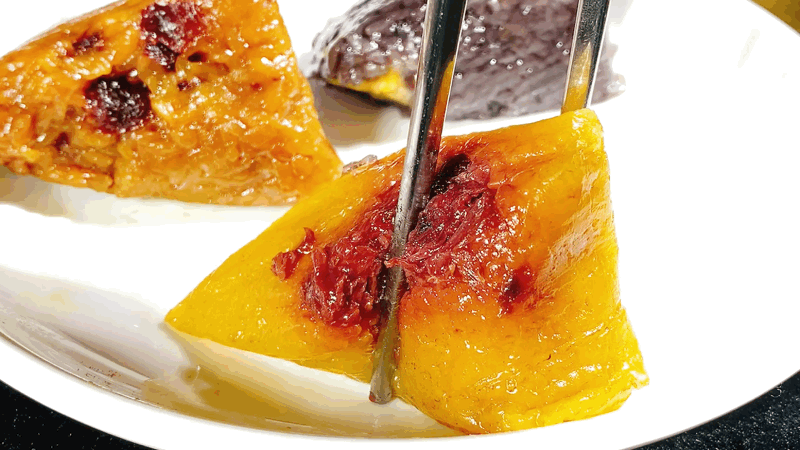 橙色的蔓越莓粽 ,红宝石般的蔓越莓酸甜可口,不经意咬到半颗,就像在一场味觉捉迷藏中,找到最惊喜的那缕风味,小孩子会对它尤为欢喜。