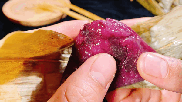 紫薯粽 ,香喷喷的紫薯泥嵌入鲜糯米当中,两相交织,透出入口难忘沁人心脾的香气,这种味道会成为钟爱之人的独宠。