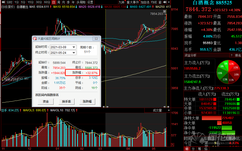今日,白酒概念大涨4.30%,突破1月高点再创历史新高。板块内伊力特、大豪科技、古井贡酒、舍得酒业(600702)、青青稞酒、老白干酒涨停,豫园股份(600655)、海南椰岛(600238)等跟涨。