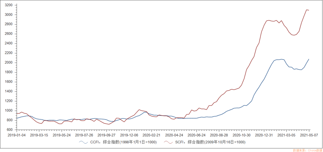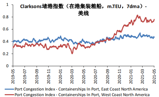 系统性供需紧张下SCFI即期运价陆续创历史新高,美西码头、铁路、车架运能短缺问题较前期有所加剧。