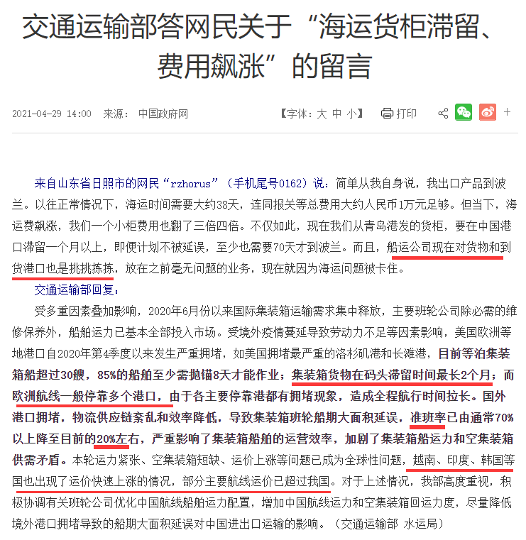 本轮运力紧张、空集装箱短缺、运价上涨等问题已成为全球性问题 ,越南、印度、韩国等国也出现了运价快速上涨的情况,部分主要航线运价已超过我国。”