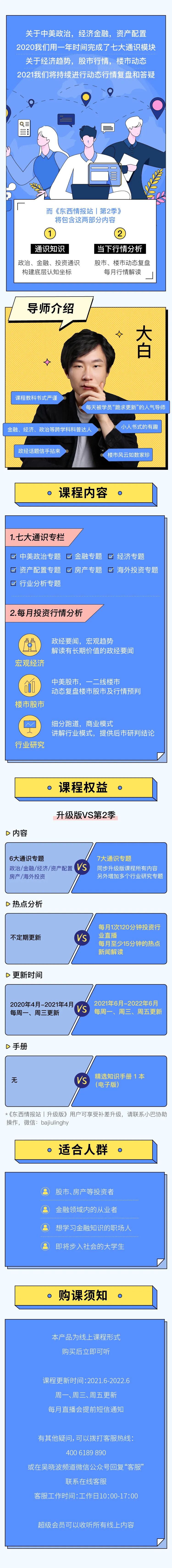 当每个个体或群体,被愉悦自己的信息砌起来的“墙”所包围时,我们看到的世界越来越狭小,而在一道道“高墙”之下,个体、群体或组织间的沟通、对话将变得更为困难。 但课程《东西情报站|第2季》,更像通识类课程。除了通过7大通识专栏来构建学员的底层认知坐标外,还会进行每月投资行情解读。 大白老师透彻地讲解政治、金融、投资等知识,就是在推倒那一堵堵信息的“高墙”,带领我们走出“信息茧房”,让我们看到更大的世界。