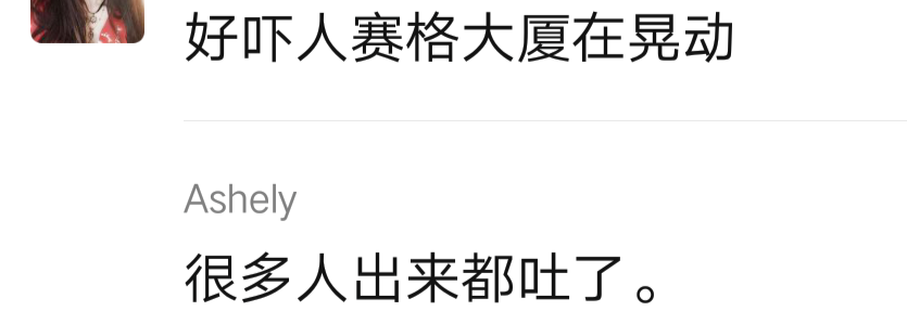 “我在44层,晃感很强,桌子都在乱跑。都是我们下去了之后,低楼层的人才跑的。“