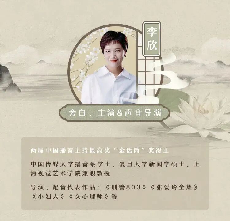 我们邀请了两届“金话筒”奖得主 李欣 ,担任旁白、主演和声音导演,语言清晰、优美明快,带你声临其境。