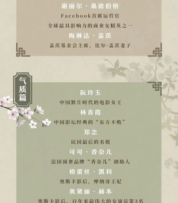 比如,缔造时尚帝国的可可·香奈儿、“罗马假日公主”奥黛丽·赫本;