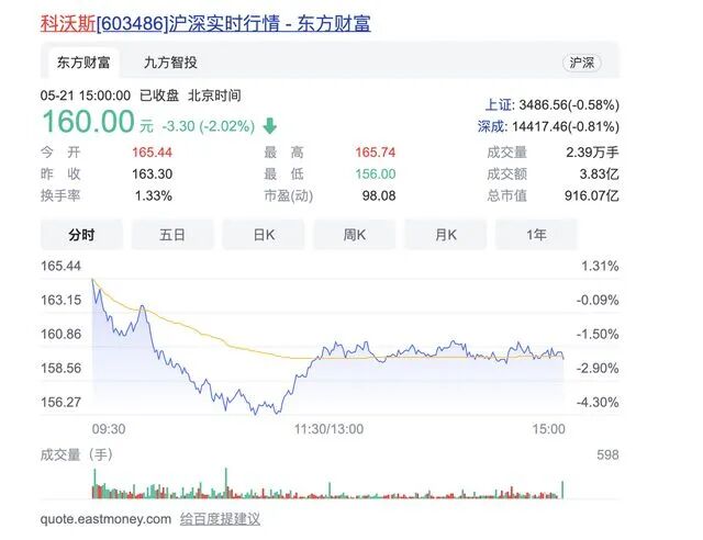 自2020年5月以来,科沃斯涨势如虹,首发股东限售股浮盈已超10倍。截至最新收盘日,科沃斯股价报160元。