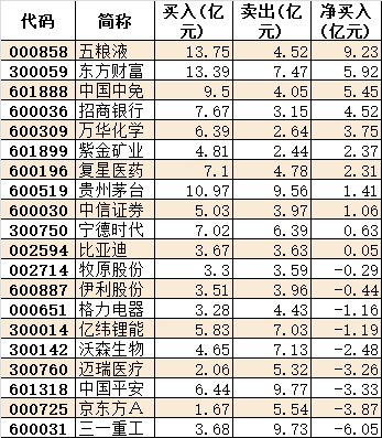 今天北上资金净买额90.3亿元,活跃股票见下表。