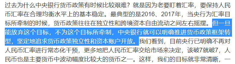 明显,这位所长的观点认为我们应该放弃人民币汇率目标。