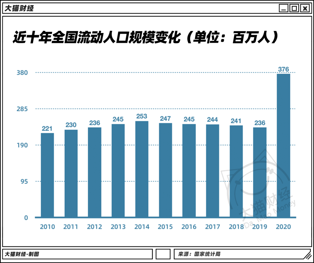 整个2020年,全国流动人口的规模为3.76亿,也就是说平均每4个人里就有一个人选择了移居 ,这个比例着实不低。