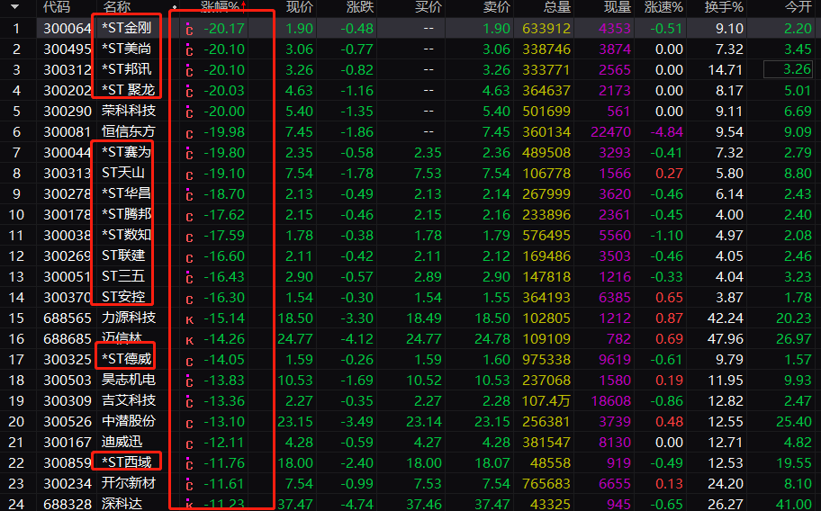 你们看看吧,今天的跌幅榜,太惨了,跌停数量达到132家,很久没有这样的跌停了, 多少散户爆亏?这里面,大部分都是ST,如果你早早的信大石的,必定会躲过这些坑;