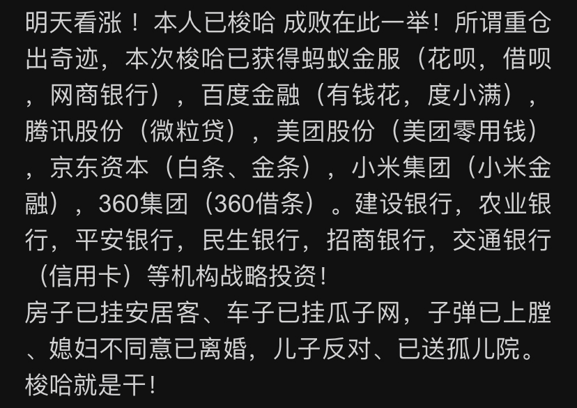 不得不说,股友们的心态是真好,在A股如此恶劣环境下,还能编出各种段子,真的是不容易;