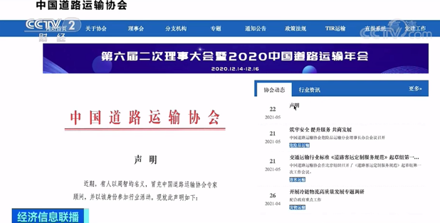 在中国道路运输协会官网,记者看到,首页登出的一份声明也表示,协会无名为周智均的人员,从未委托周智均以“中国道路运输协会专家顾问”的名义参加行业活动。