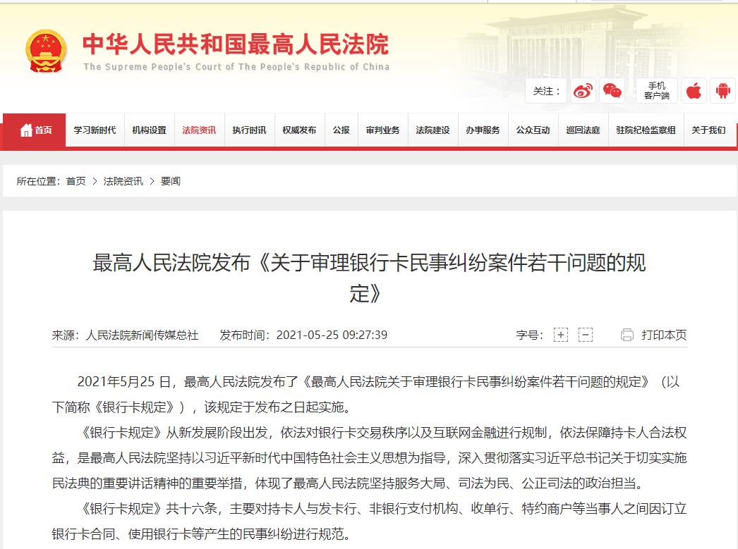 最高人民法院今天(25日)发布《关于审理银行卡民事纠纷案件若干问题的规定》,规定明确,发生伪卡盗刷交易或网络盗刷交易,借记卡持卡人基于借记卡合同法律关系请求发卡行支付被盗刷存款本息并赔偿损失的,人民法院依法予以支持。
