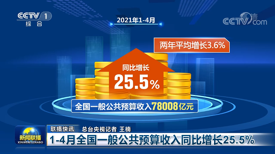 1-4月全国一般公共预算收入同比增长25.5%