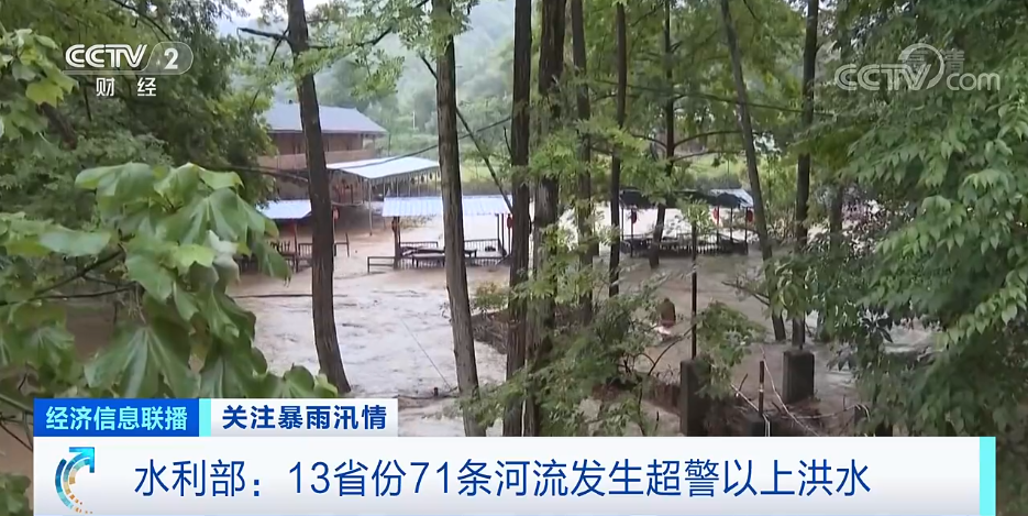 水利部:13省份71条河流发生超警以上洪水