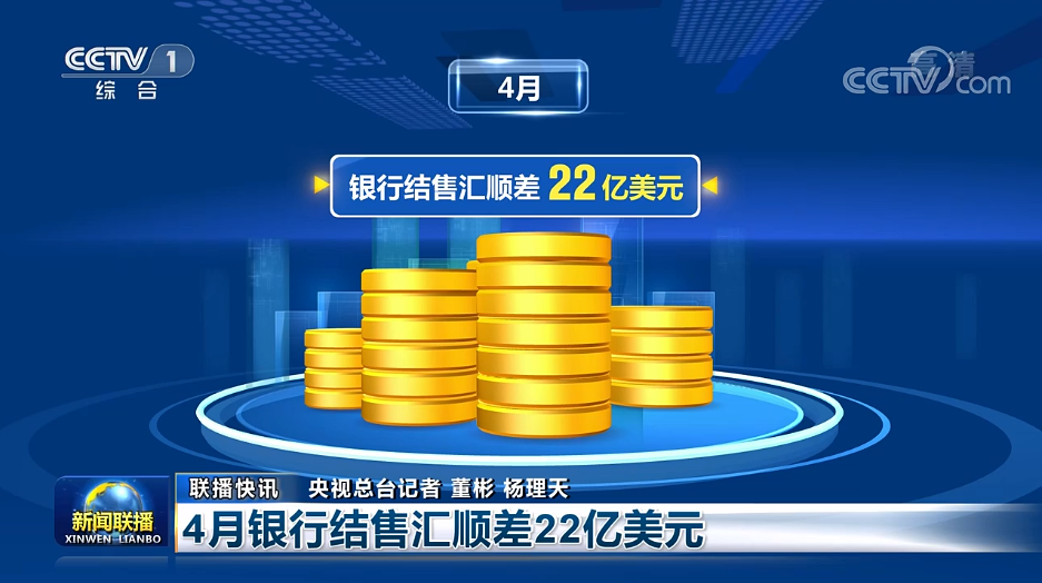 国家外汇管理局最新数据显示,4月,银行结售汇顺差22亿美元。我国外汇市场供求更趋平衡,跨境双向投资合理有序。