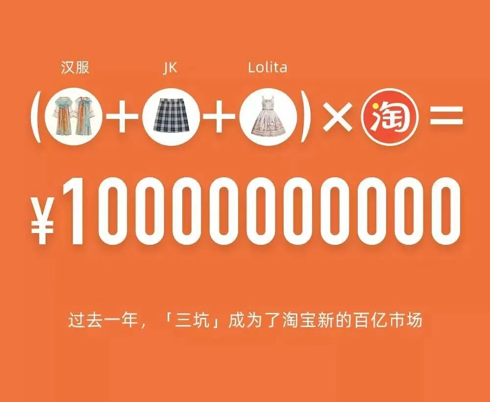 数据显示,淘宝上目前汉服、洛丽塔装和JK制服“三坑”的市场规模已经超过百亿,而且25岁以下的人群占比60%。