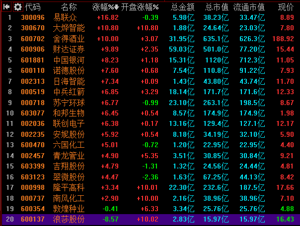 跟上次的伊戈尔一样,开盘就是秒砸跌停,这是要一天使出一个杀手锏祭天?热点轮动也比较快;之前的汽车高位几个小康,北汽,长安都是大跌,昨天的碳中和分化,今天白酒又高潮,高位还剩下两个活口百龙创园和融捷股份,山东墨龙和东方银星等都是大跌。