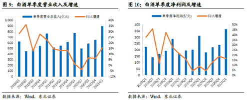 从白酒子行业来看,2020年产量下滑,但营收和利润稳健增长,消费升级依然明显。其中高端酒表现出极强的抗风险能力+增长稳健性;次高端随高端提价,弥补了销量下滑的影响;中低端不具备消费回补的特征,收入端明显下滑。