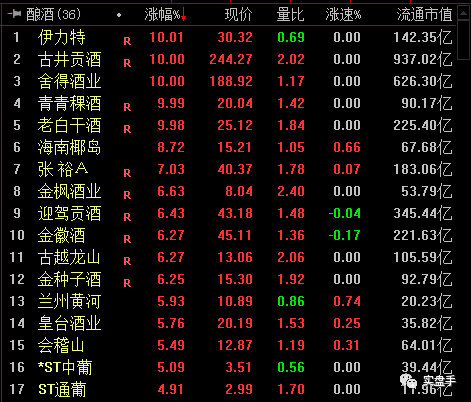 今天走的好还是以机构票为主,白酒板块以二线白酒涨的最好:
