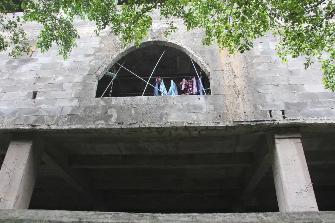 以陕西府谷县为例,据此前媒体报道,丰富煤炭资源带来了财富,也催生了小县城的成片高楼。但随着煤炭经济下行,原本源源不断流入固定资产中的投资被拧上了水龙头。仅仅几年,高楼和烂尾楼比邻而立,数十平方公里的新区内人迹罕至,“空城化”严重,一个个高层玻璃、外墙尚未完成,施工队伍却已经不知所踪。2015年,广州一处烂尾楼,附近居民在楼中晾晒衣物。/图虫创意