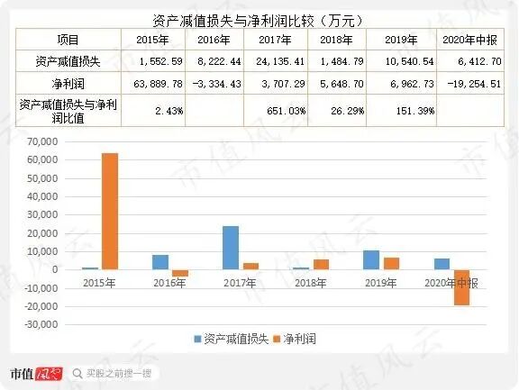 2015年以来,上市公司均存在不同程度的资产减值情况,其中2017年2.4亿元是当期净利润的6.5倍,2019年1.05亿是当期净利润的1.5倍。