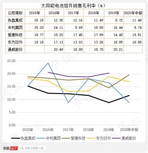 而协鑫集成主要产品太阳能电站组件的销售毛利率来看,其也明显低于同行业公司。