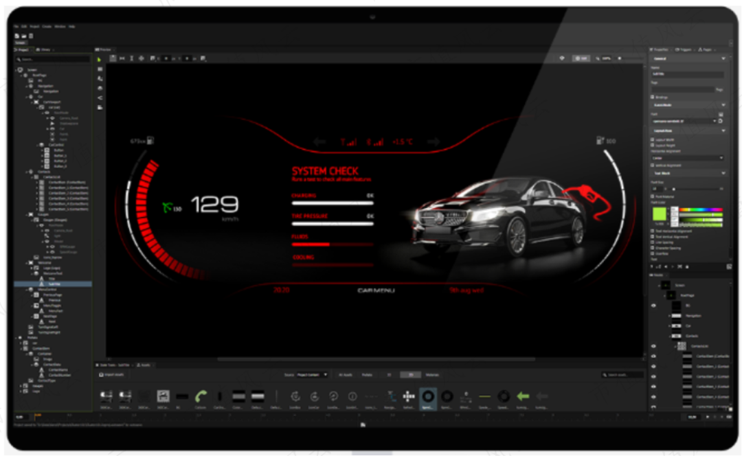 Kanzi系列产品是汽车用户界面设计工具,主要面向汽车工业,比较常见的有数字仪表盘,信息娱乐系统和抬头显示系统等。